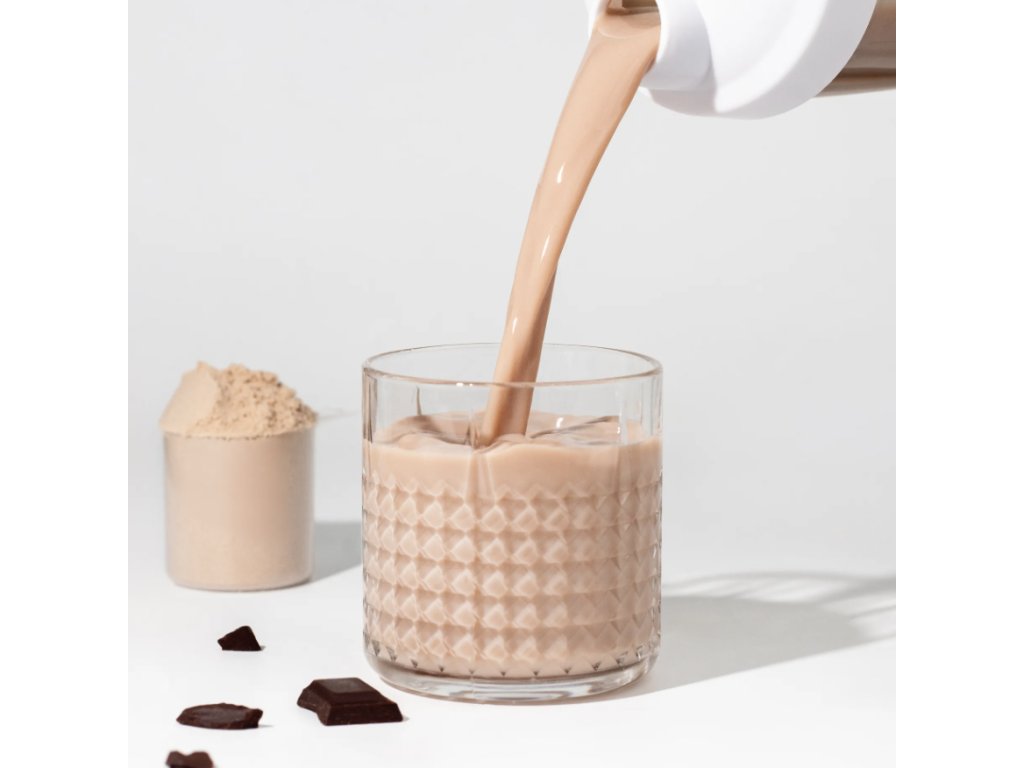 Ultrafiltrát srvátkový proteínový koncentrát (mlieko, emulgátor: slnečnicový lecitín) 95 %, kakaový prášok 4 %, prírodná aróma, sladidlo: steviol-glykozidy.