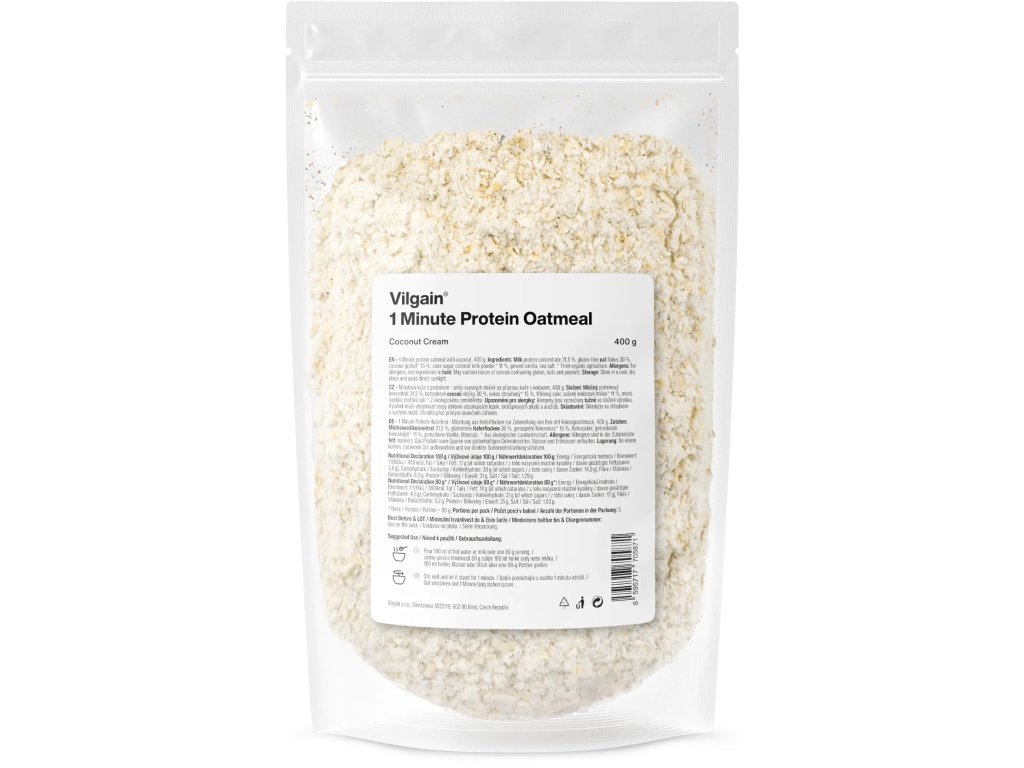 Vilgain Proteínová kaša spája prémiové bezlepkové ovsené vločky, kvalitný mliečny proteín a kokosové mlieko do chutného a výživného jedla. Kaša je dosladená iba štipkou trstinového či kokosového cukru, takže si ju môžeš vychutnať bez zbytočných aditív. Vďaka 25 g bielkovín v porcii podporuje rast a udržanie svalovej hmoty a zasýti na dlhší čas.