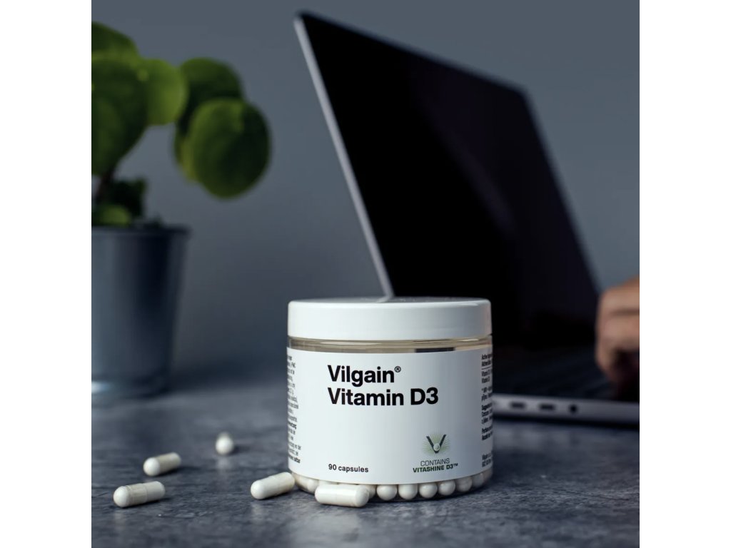 Vilgain Vitamín D3 v kapsulách obsahuje cholekalciferol – formu vitamínu D, ktorú telo najlepšie využije. Na rozdiel od vitamínu D2 má až o 87 % lepšiu vstrebateľnosť a biologickú dostupnosť. Tento doplnok je obohatený o patentovaný Vitashine®, pochádzajúci z ekologicky udržateľného zberu lišajníkov, vďaka čomu je úplne vhodný aj pre vegánov. Vitamín D3 je kľúčový pre správne fungovanie imunitného systému, zdravé kosti a svaly a zároveň prispieva k normálnej hladine vápnika v krvi.